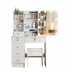 โต๊ะเครื่องแป้งสไตล์โมเดิร์นกระจกสไลด์พร้อมไฟ LED พร้อมหลอดไฟหรี่10หลอด